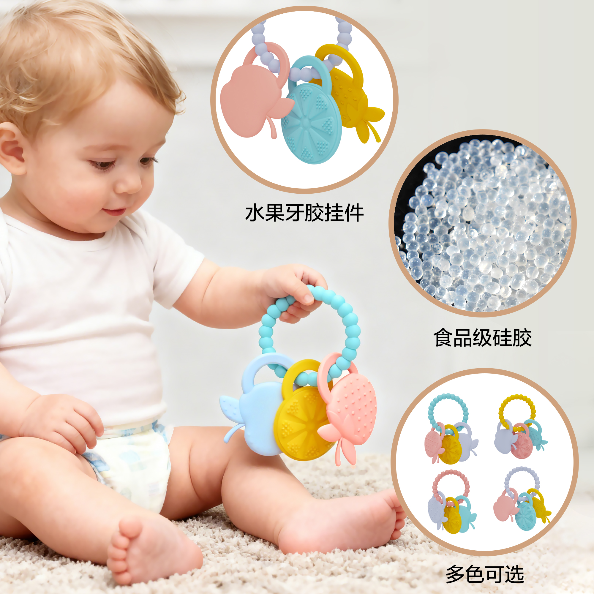 您的位置:首頁 > 產品中心 > 硅膠嬰童用品 > 牙膠 > 亞馬遜新生嬰兒硅膠牙膠防吃手圓環(huán)食品級可握咬玩具手環(huán)母嬰牙膠